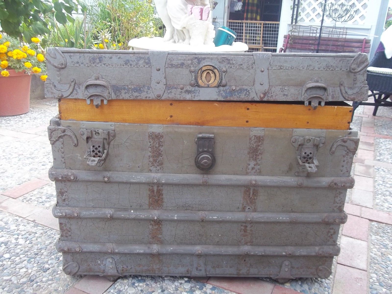Title (ebay affiliate link): Antique Steamer Travel Trunk Lamontagne La Montagne United Montreal