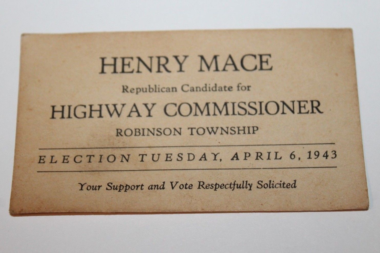 Title (ebay affiliate link): Henry Mace Robinson Township Crawford County Robinson Illinois Card 1943 Vintage