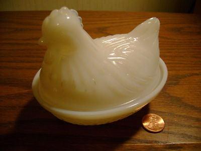 MILKGLASS CHICKEN ON NEST OPEN SALT CELLAR DIP DISH