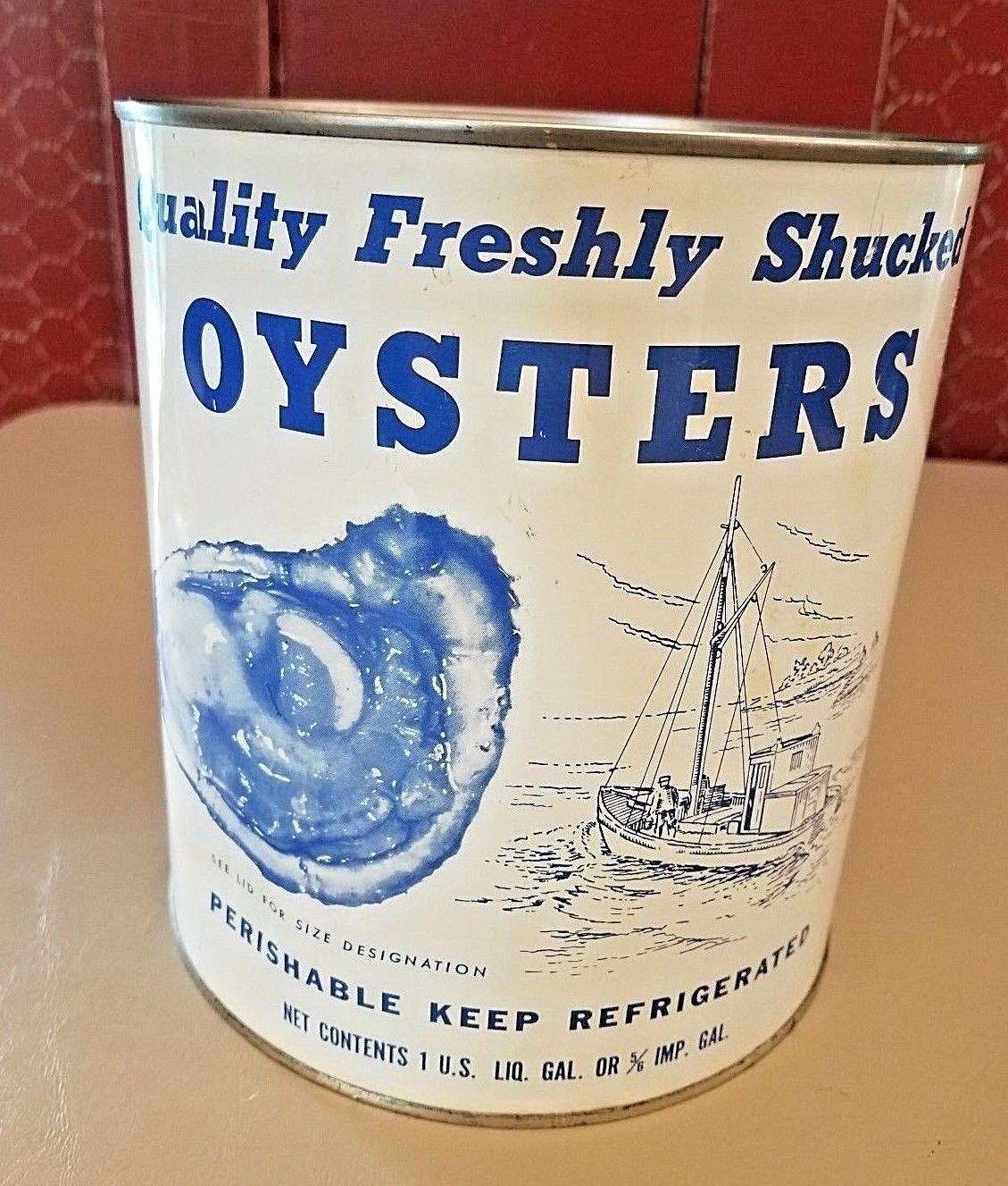 Title (ebay affiliate link): Vtg 1 Gallon Oyster Tin - Quality Freshly Shucked Oysters - Thos E Reed Seafood