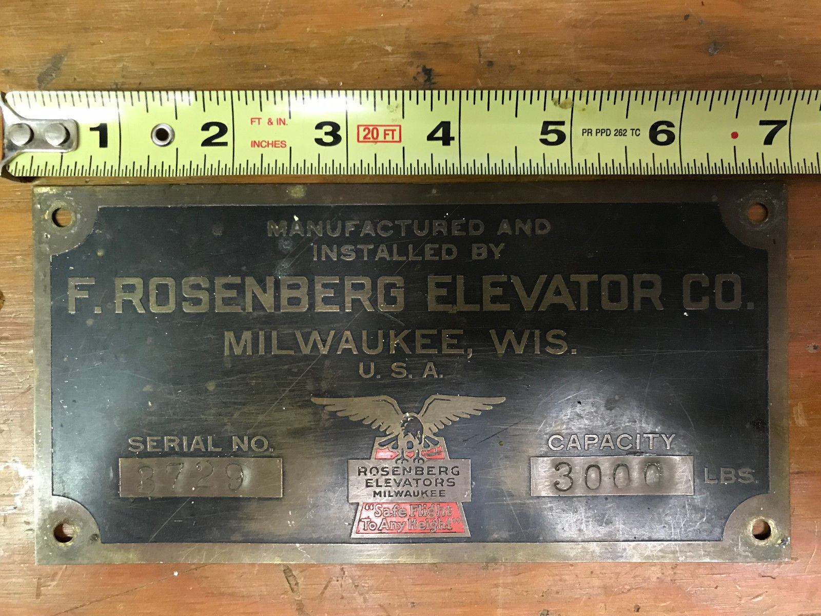 Title (ebay affiliate link): Otis Elevator, Dover Elevator, Rosenberg Elevator Data Plate