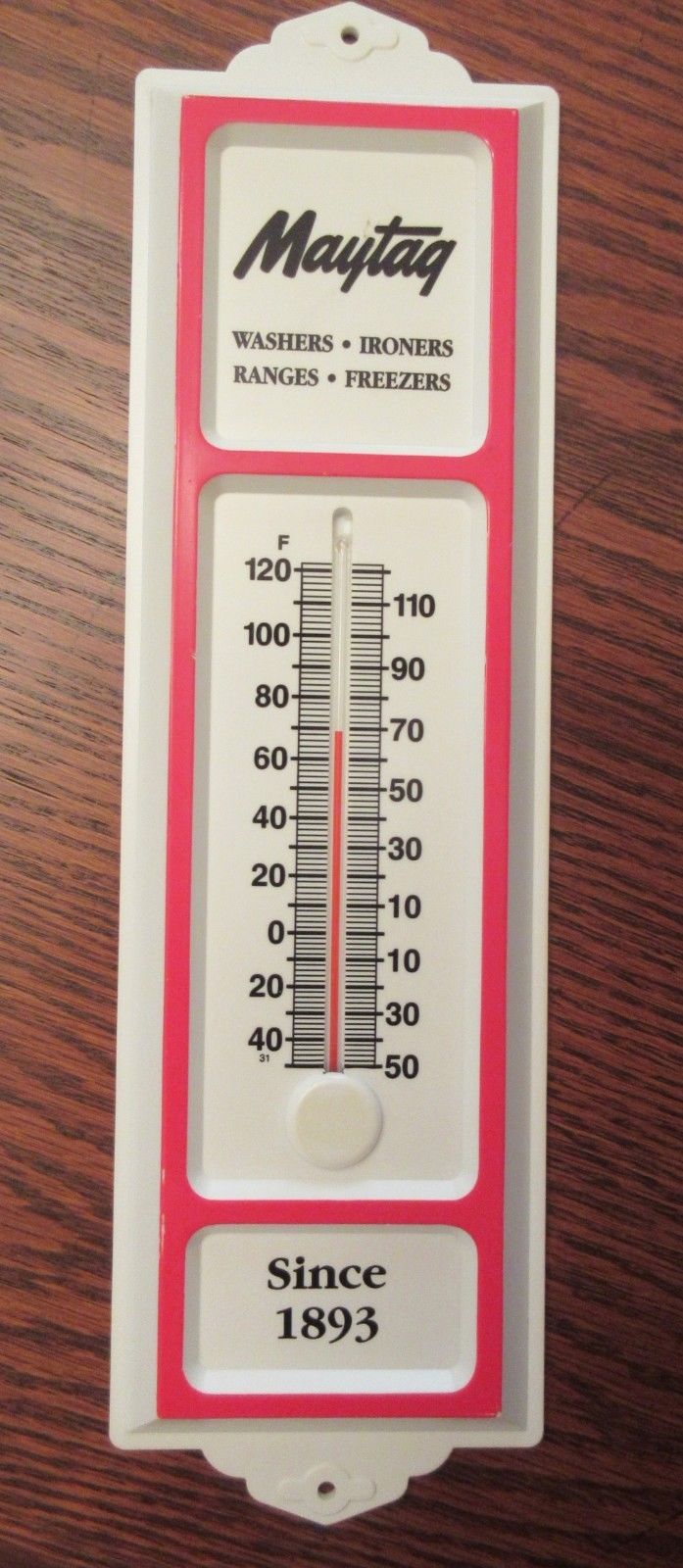 Title (ebay affiliate link): Vintage Maytag Since 1893 Advertising Plastic Indoor/Outdoor Thermometer 13 1/4"