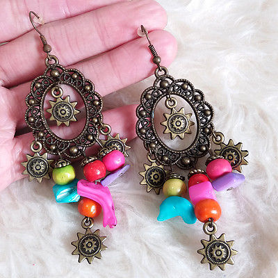 Title (ebay affiliate link): NEW Vintage Womens Bohemian Antique Random Multi Color Beads Stars Hook Earrings