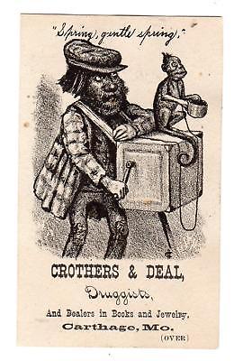 1885 CARTHAGE MO*CROTHERS & DEAL*ORGAN GRINDER & MONKEY*VICTORIAN TRADE CARD