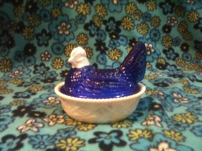 Westmoreland Glass Hen on Nest Dish Chicken Milk Cobalt