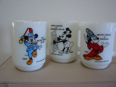 3 Vintage Anchor Hocking Milk Glass Mickey Mouse Mugs