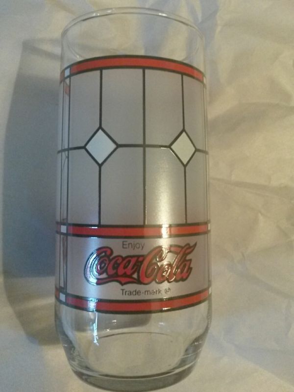 Title (ebay affiliate link): Coca Cola Drinking Glass VINTAGE TIFFANY STYLE Coke FROSTED STAINED GLASS