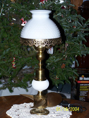 Brass Propeller Milk Glass Shade elec Table Lamp