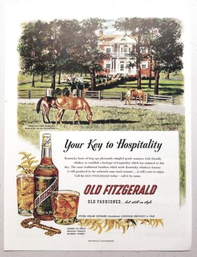 Title (ebay affiliate link): 1950 Print Ad Old Fitzgerald Kentucky Bourbon Whiskey Mansion & Horse Farm