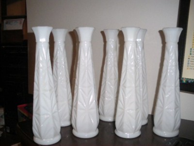 SET OF 8 MATCHING MILK GLASS VASES 9 IN TALL