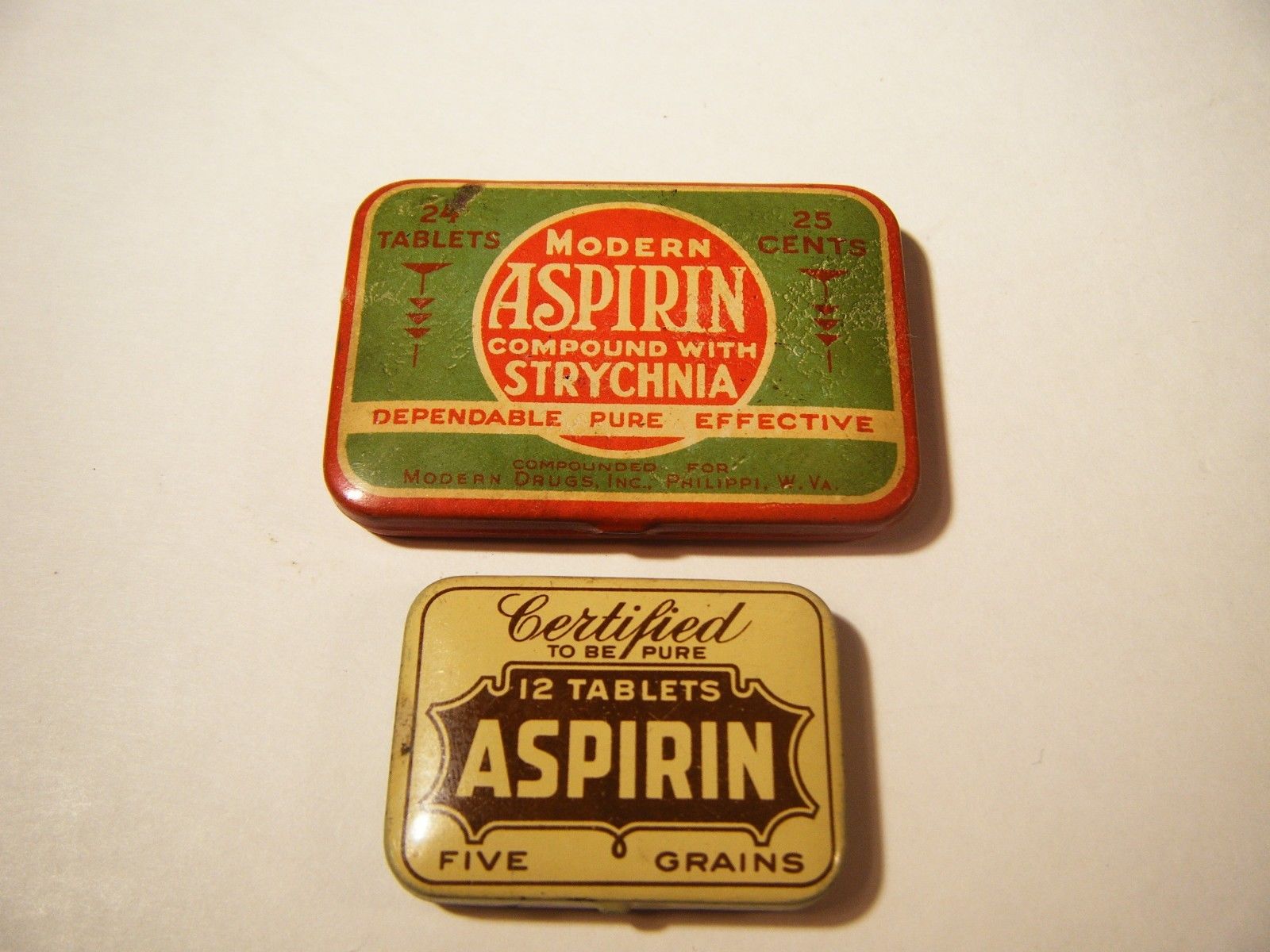 Title (ebay affiliate link): VINTAGE LOT OF 2 ASPIRIN TINS CERTIFIED ASPIRIN & MODERN ASPIRIN EMPTY