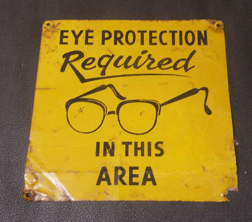Title (ebay affiliate link): Vintage Industrial Sheet Metal Eye Protection Required In This Area Wayfarers