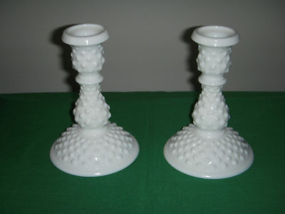 Vintage Fenton Hobnail Milk Glass Candle Sticks Holders