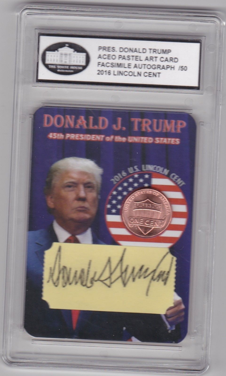 Title (ebay affiliate link): PRESIDENT DONALD TRUMP ACEO Pastel Art Print 2016 Cent FACSIMILE AUTO #36/50