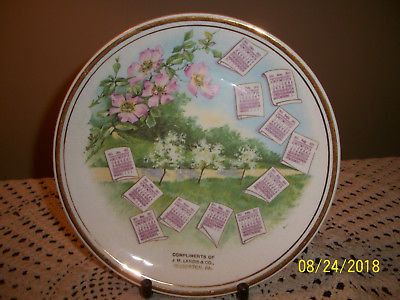 1911 Pink Dogwood Calendar Plate Compliments of J M Landis Co Souderton, Pa