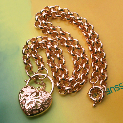 500mm 9KT Yellow Gold GF Heart Padlock Necklace