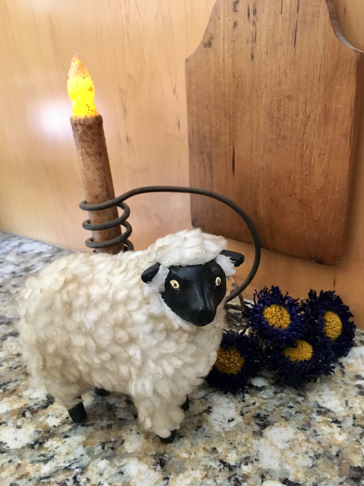 Title (ebay affiliate link): ADORABLE Primitive Folk Art Sheep Shelf Sitter. COUNTRY FARMHOUSE DECOR