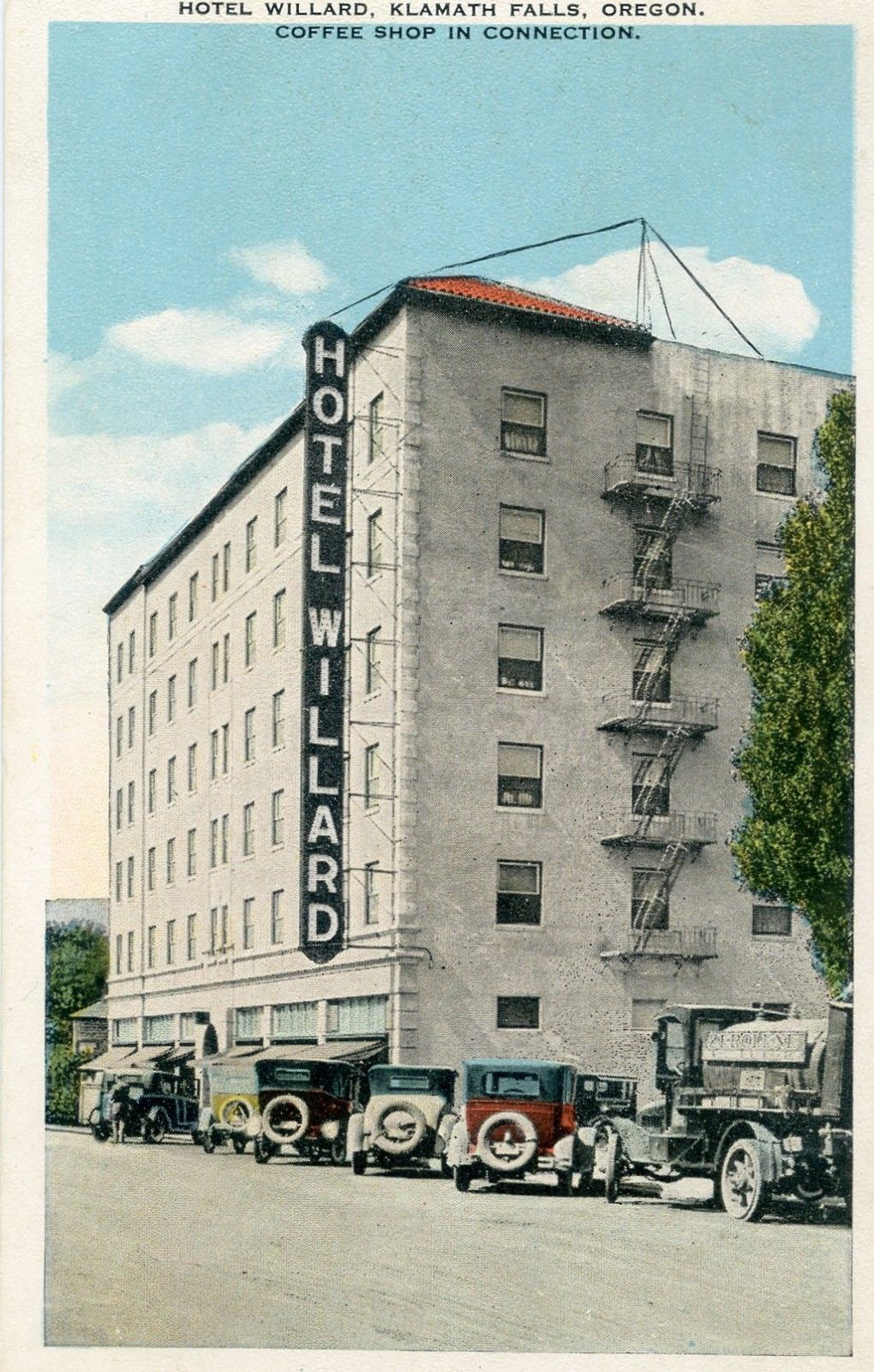 Title (ebay affiliate link): Vintage roadside postcard, Hotel Willard, Klamath Falls Oregon, nice 1920''s cars