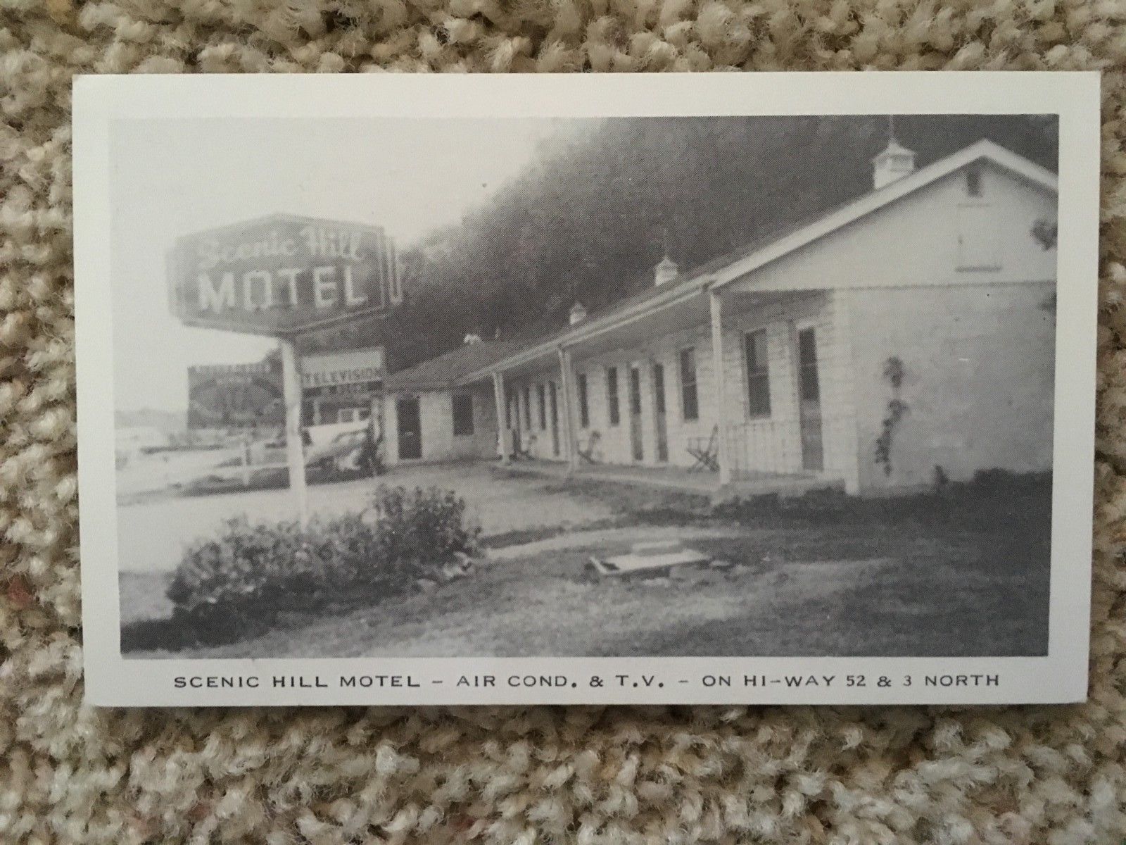 Title (ebay affiliate link): Scenic Hill Motel- Air Cond. & T.v.- On Hi-way 52 & 3 North
