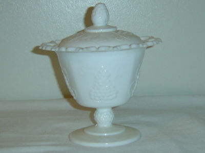 Vtg INDIANA HARVEST GRAPE MILK GLASS COVERED COMPOTE