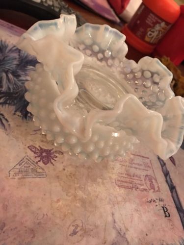 2 Vintage Opalescent Hobnail Milk Glass Bowls