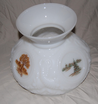 10" Aladdin White Milk Glass Shade "Four Seasons"
