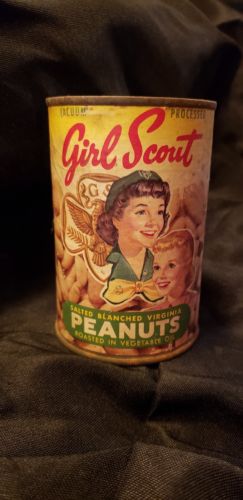 Title (ebay affiliate link): Antique vintage tin can, paper label, Girl Scout Peanuts, great rare image!