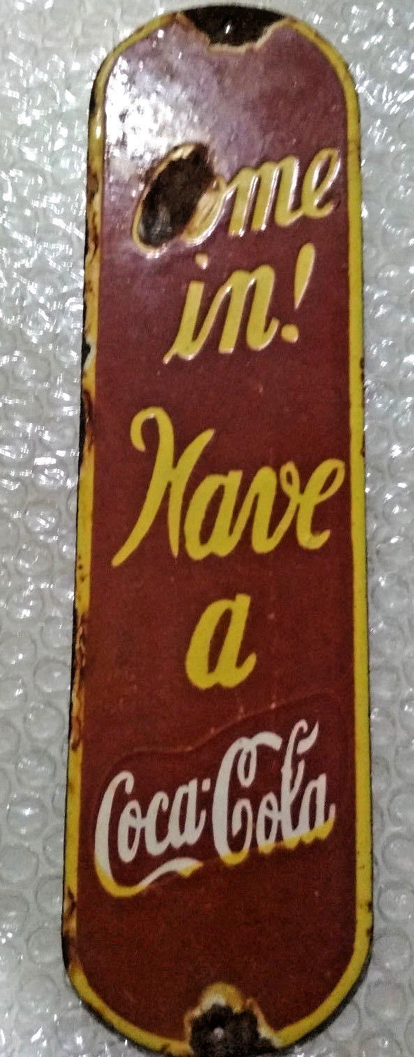 COCA COLA DOOR PUSH PORCELAIN SIGN 11X3 INCHES SINGLE SIDE