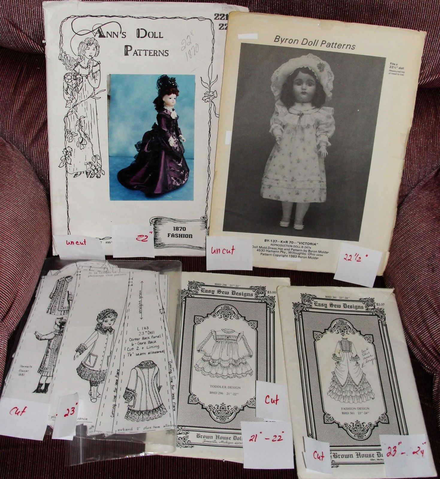 Lot of 5 Doll dress patterns;doll size 21"-24";antique,vint.,Ger. china dolls