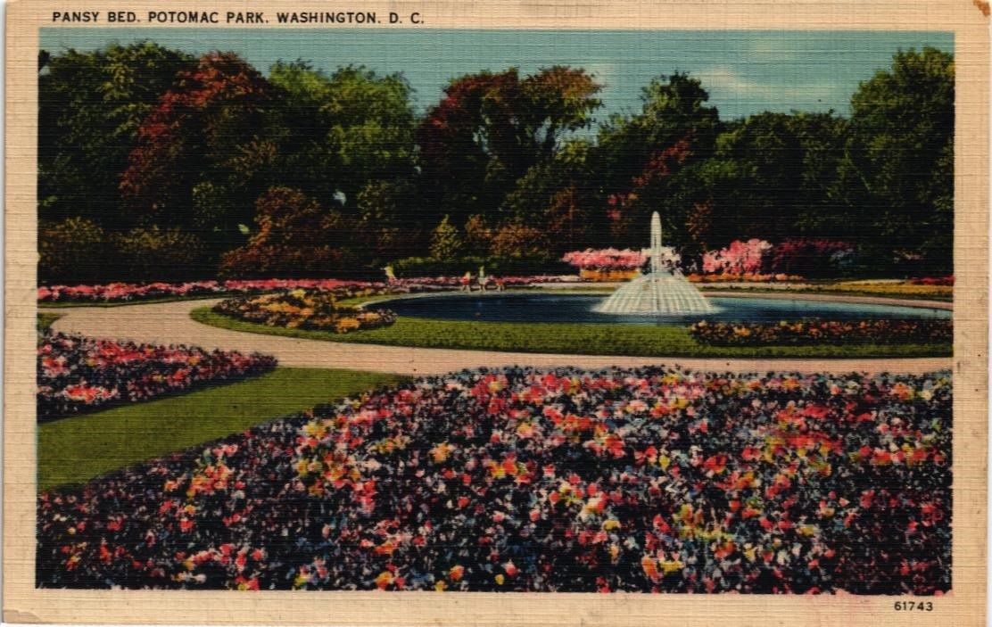 DR JIM STAMPS US POSTCARD POTOMAC PARK PANSY FLOWER BED WASHINGTON DC LINEN