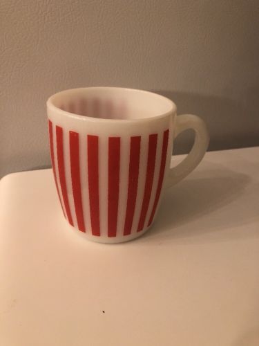 Vintage Hazel Atlas Milk Glass Red Stripe Coffee Cup Mug