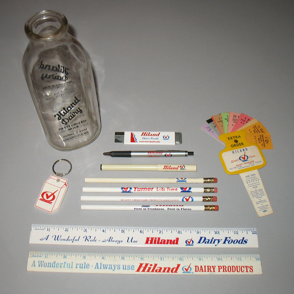 Hiland Dairy Milk Glass Bottle Selector Box Knife Pencil Keyring Lot Vintage