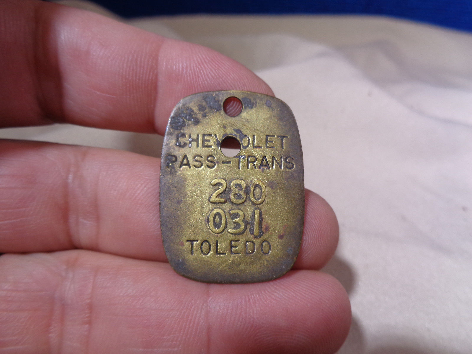 Vintage Chevrolet Brass Tool Tag Chevy Industrial Tool Check Keychain
