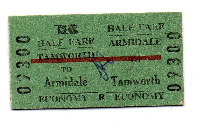 SRA railway Ticket-Tamworth to Armidale -return