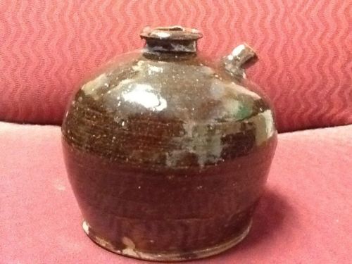 ANTIQUE POTTERY BROWN STONEWARE JUG WITH SPOUT
