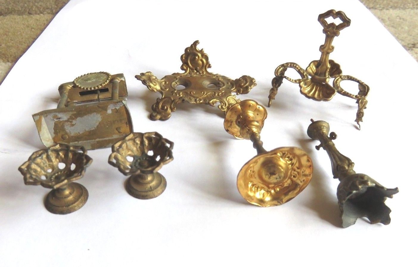 Title (ebay affiliate link): ANTIQUE ERHARD & SOHNE GILDED ORMOLU DOLLS HOUSE FURNITURE ODDMENTS C1890