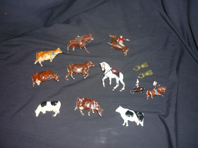 13 X Old Britains England Lead Toy COW/ SOLDIER