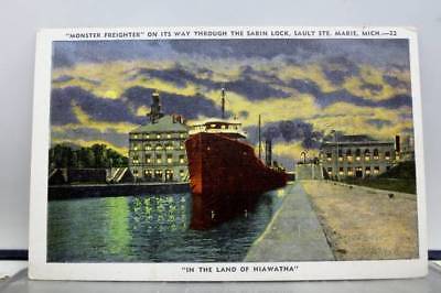 Michigan MI Sault Ste Marie Sabin Lock Monster Freighter Postcard Old Vintage PC
