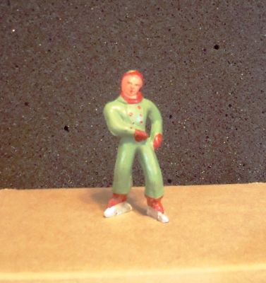 VINTAGE METAL MALE SKATER FIGURE GREEN WITH RED TRIM