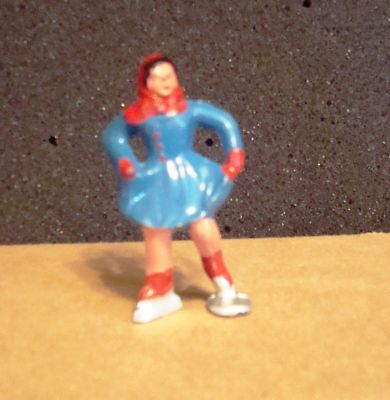 VINTAGE METAL FEMALE SKATER FIGURE BLUE WITH RED TRIM