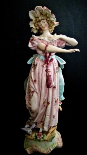 Title (ebay affiliate link): ANTIQUE BISQUE LADY BONNET DOVE FIGURINES JAPANESE PORCELAIN FAUX CAPODIMONTE N