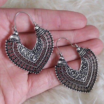 Title (ebay affiliate link): Vintage Bohemians Boho Womens Antique-Silver Hollow Heart Huggie Hook Earrings
