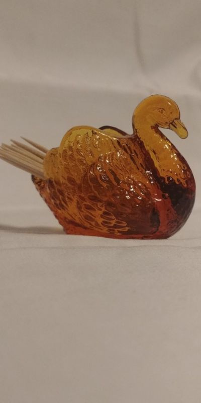 Title (ebay affiliate link): Antique Amber Depression Glass Swan Toothpick / Match Holder EXCELLENT Condition
