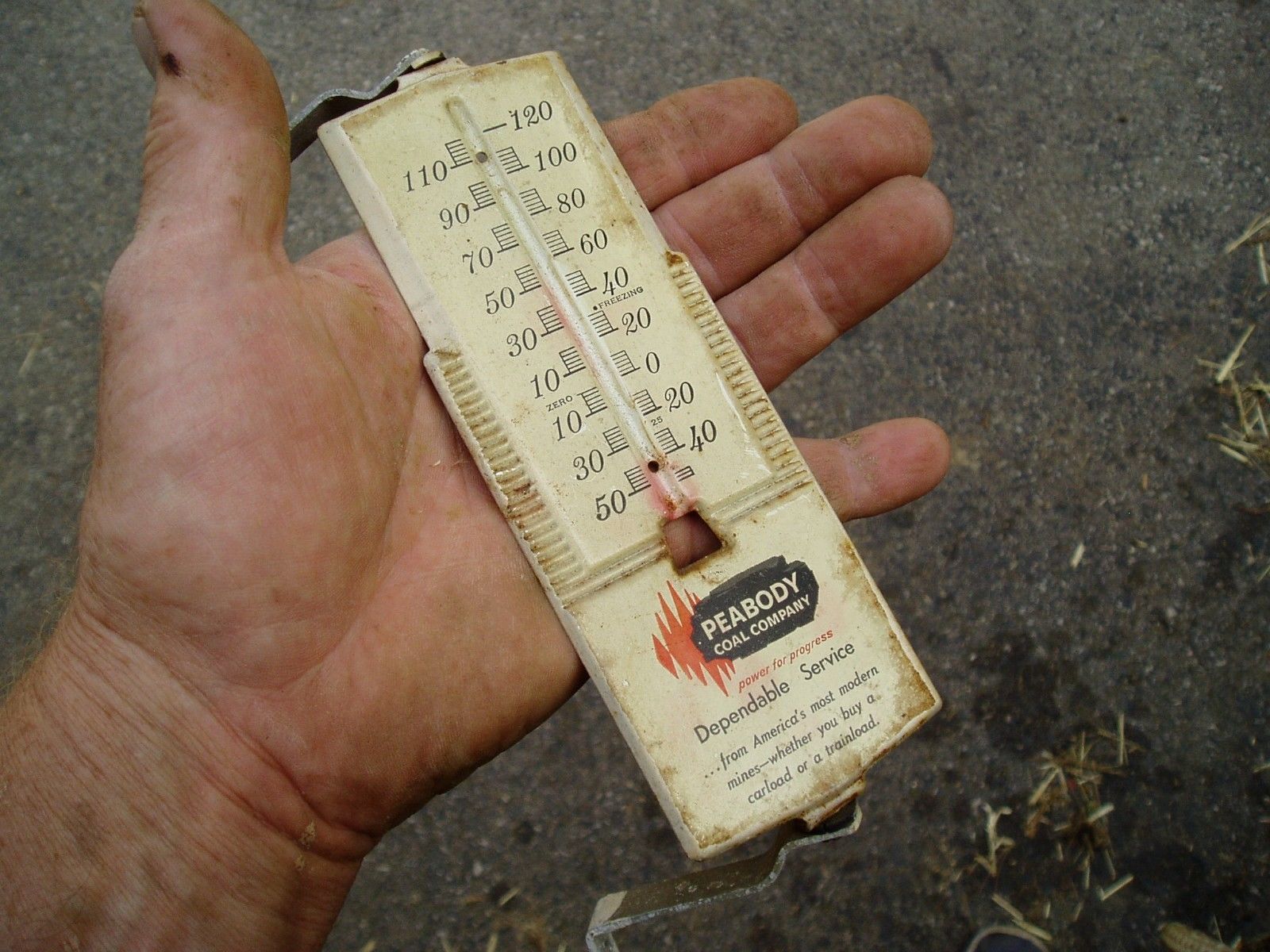 Title (ebay affiliate link): Vintage Peabody Coal Company Metal Thermometer, missing the glass