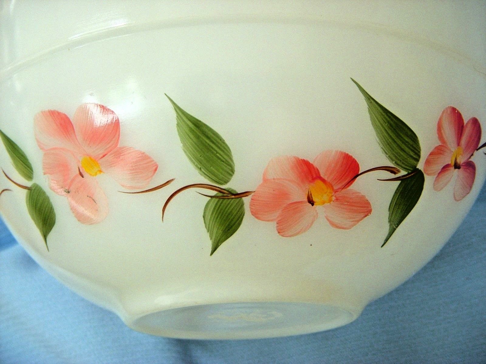 Title (ebay affiliate link): Vtg White Milkglass Fire King Peach Blossom Pink Flowers Oven Ware 7 14" Bowl #5