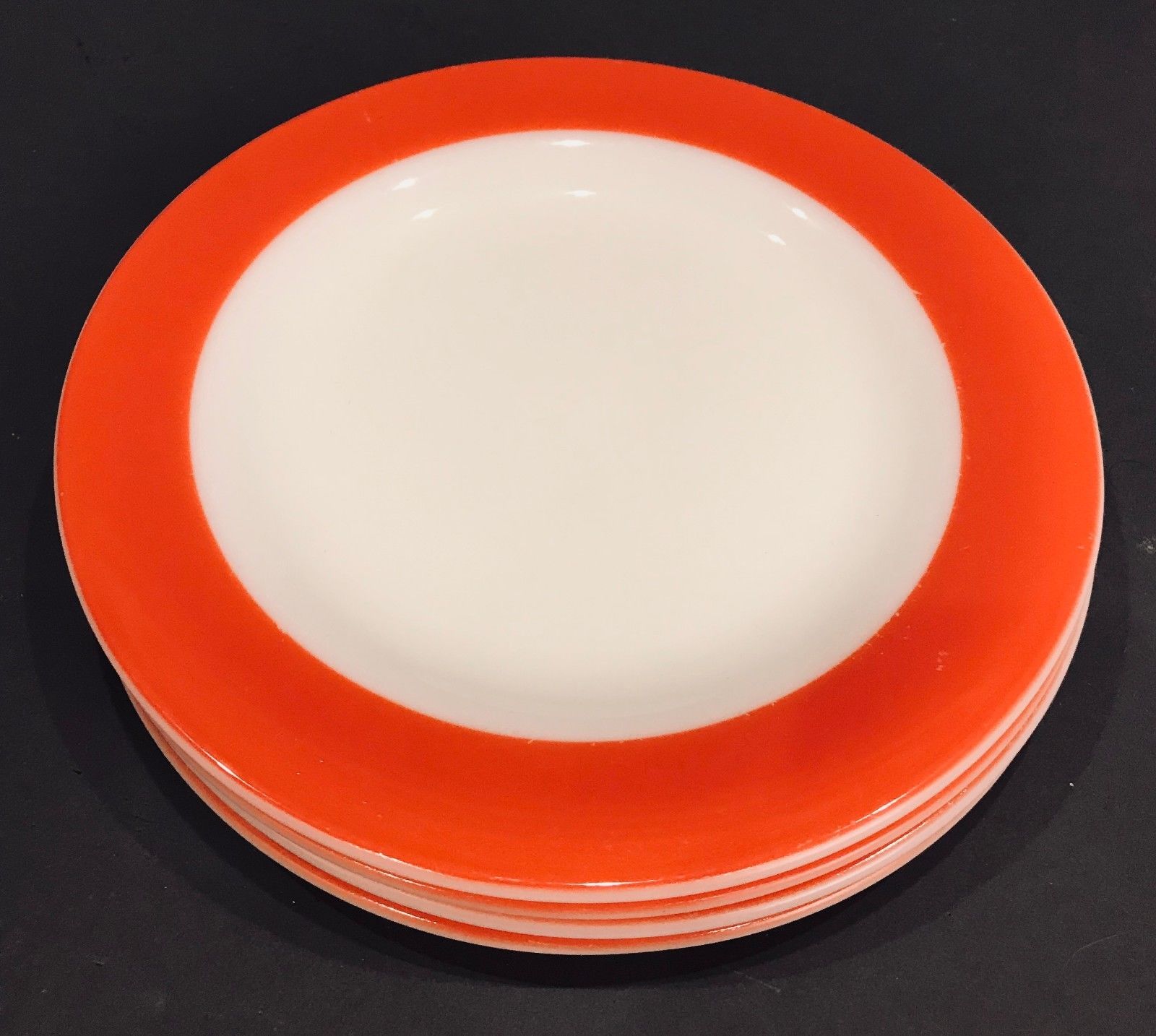 4 Vintage 10" PYREX Milk Glass Dinner Plate Flamingo Salmon Coral Pink