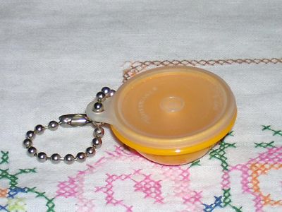 Title (ebay affiliate link): Vintage Tupperware Wonderlier Bowl Keychain Yellow