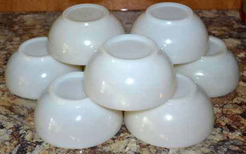Title (ebay affiliate link): 7 VINTAGE FIRE KING WHITE MILK GLASS OVEN WARE 5" CEREAL, CHILI BOWL, EXCELLENT