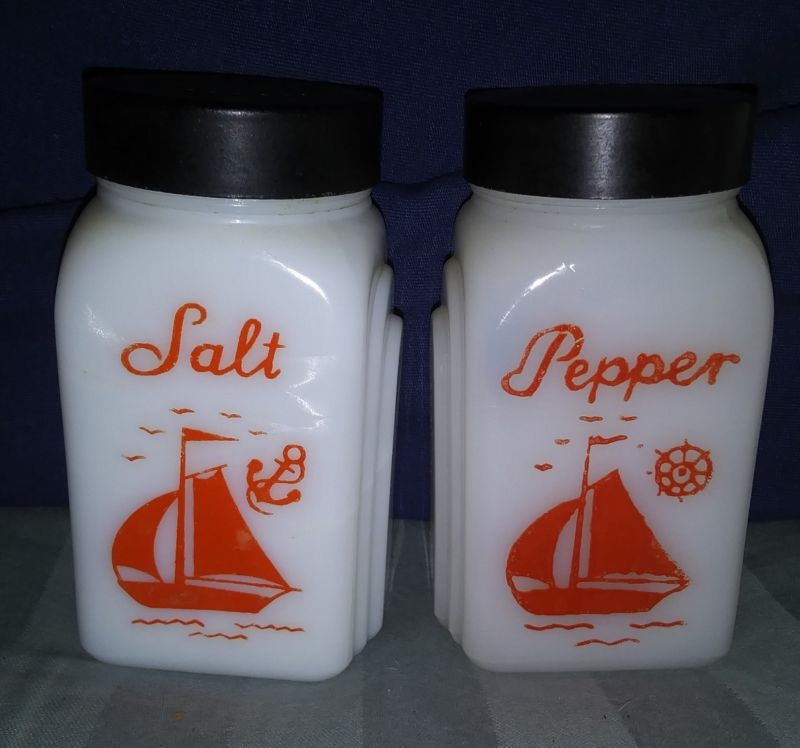 Vintage MCKEE, SAILBOAT Salt & Pepper Shaker''s, Milk Glass - Made in U.S.A.