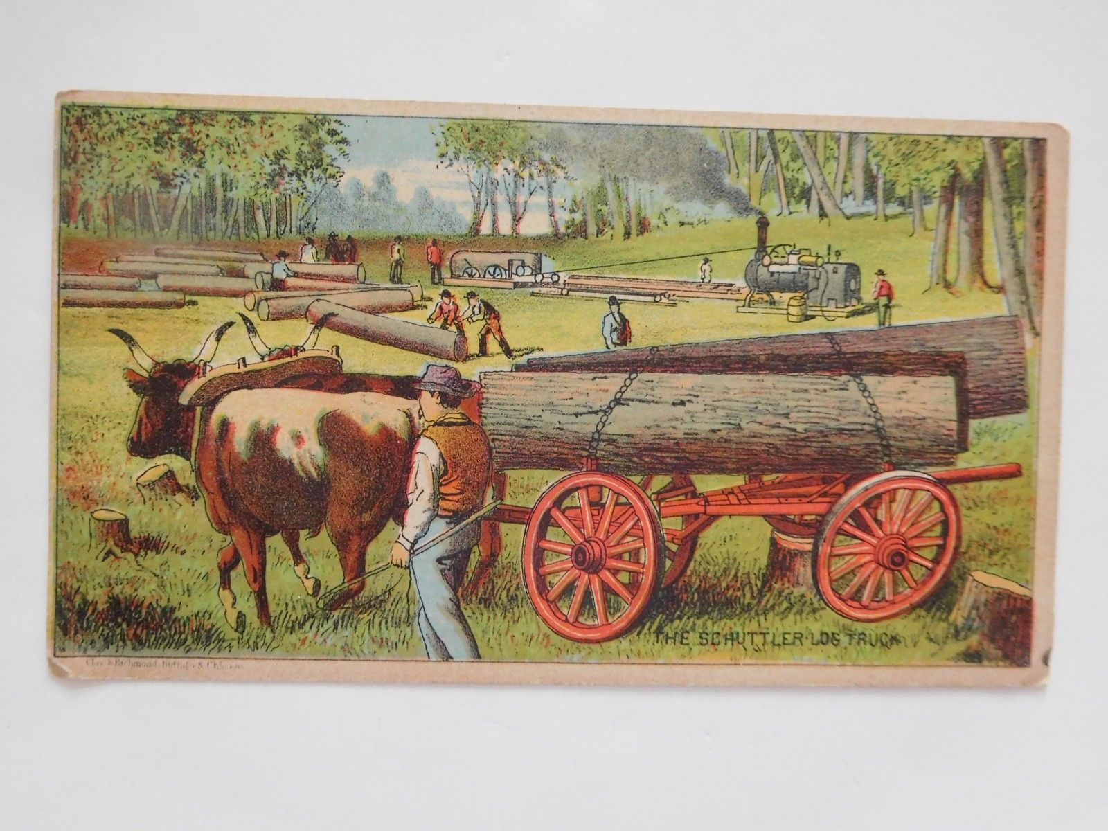 Title (ebay affiliate link): 1800''s Peter Schuttler Ox Drawn Log Truck Victorian Trade Card Sabetha Kansas KS